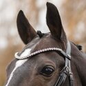 Elegant geschwungener Stirnriemen mit extra großen, funkelnden Premium Crystals in den Farben Clear Crystal oder Smoke Topaz ohne Ledereinfassung. Original Passier Logo an der linken Schlaufe.