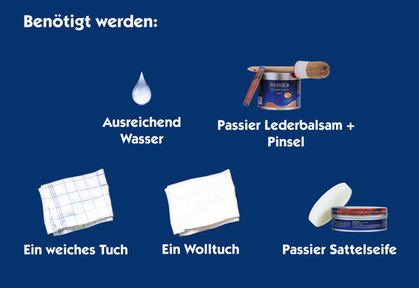 Jedes Qualitätsprodukt sollte besonders gut gepflegt werden, damit seine Hochwertigkeit lange erhalten bleibt. Passier Sättel sollten daher mindestens alle fünf Tage nach dem Reiten sowohl von oben als auch von unten sorgfältig gereinigt und anschließend mit Lederbalsam eingefettet werden. Um das Qualitätsleder zu schützen und nicht zusätzlich anzugreifen, dürfen zur Pflege nur Passier Sattelseife und Passier Lederbalsam verwendet werden.