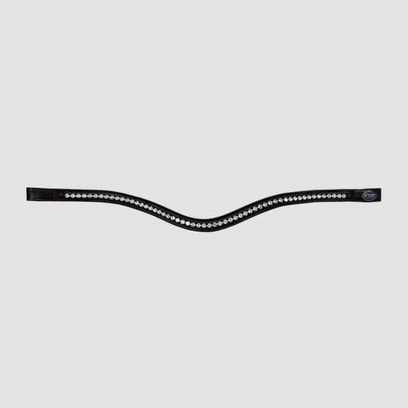 Elegantly waved browband with medium size Premium Crystals in the colors Colorado Topaz or Clear Crystal with leather border. With original Passier logo on the left loop.