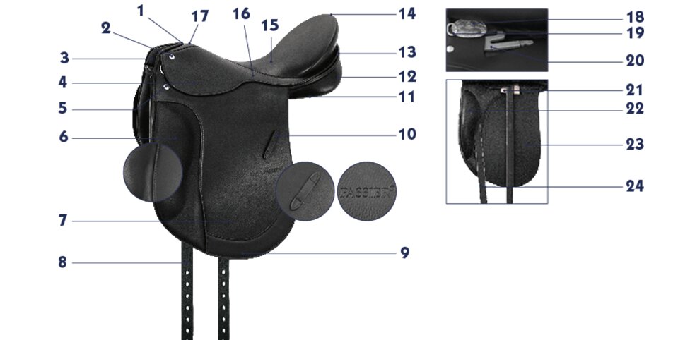 Here you can find the terminology for the Dressage Saddle (pdf 613 KB)